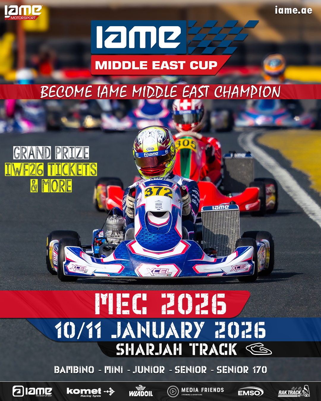 Sunday - 11 JanuaryRace 2- Qualifying Practice- Heats- Pre-Finals- Finals- Bambino Time Trials- Award Presentation (Race 2 + Overall MEC 2026)