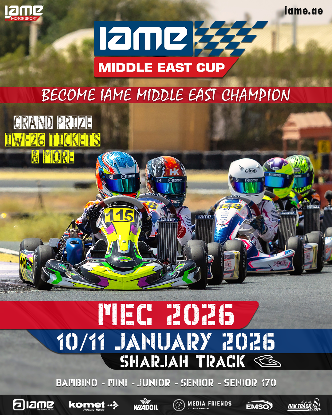 Sunday - 11 JanuaryRace 2- Qualifying Practice- Heats- Pre-Finals- Finals- Bambino Time Trials- Award Presentation (Race 2 + Overall MEC 2026)